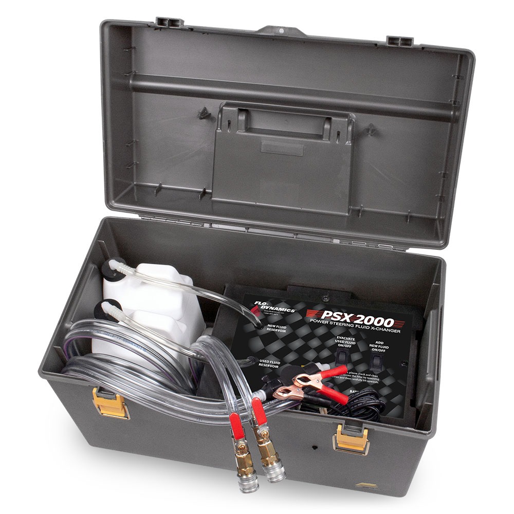 - Dual pumps and service hoses drain and refill power steering system through the system’s reservoir